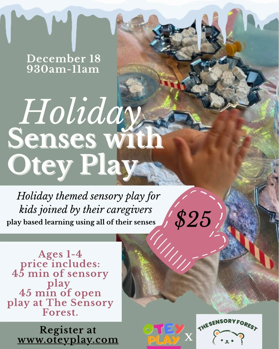 A mix of winter themed sensory play best for ages 9mo-4years old. This is a child lead play class. They will be able to move freely through the stations for 45 min followed by 45 min of open play at The Sensory Forest.