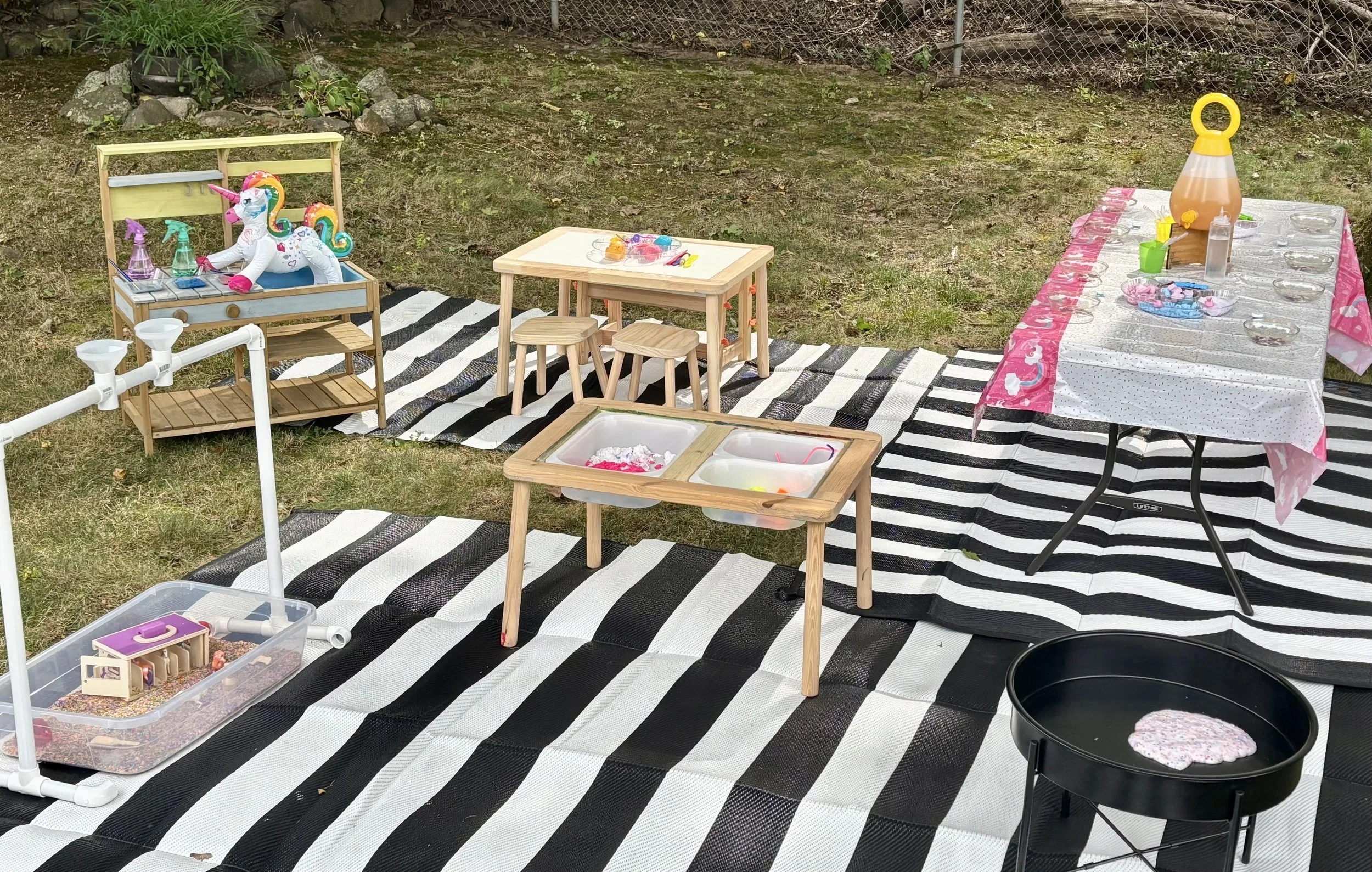- We bring the sensory play to you. Set up each station. We return at the end of play to clean up.
